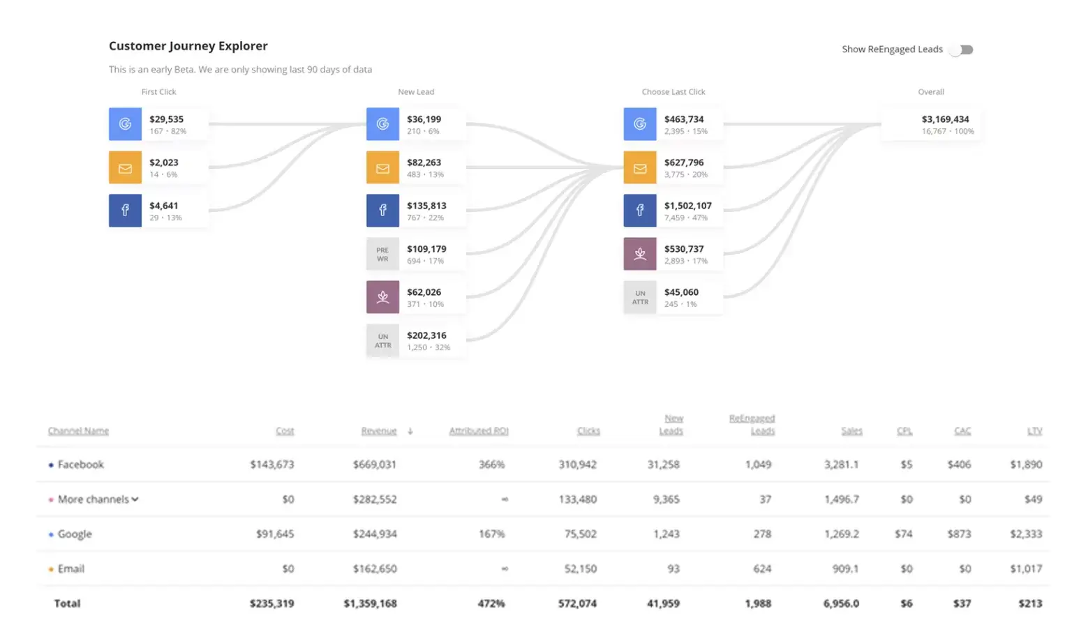 Data reliability is only half the battle. Advertisers need accurate measurement of online advertising performance across channels like Google Ads, Social Ads, Email, Organic, and more.