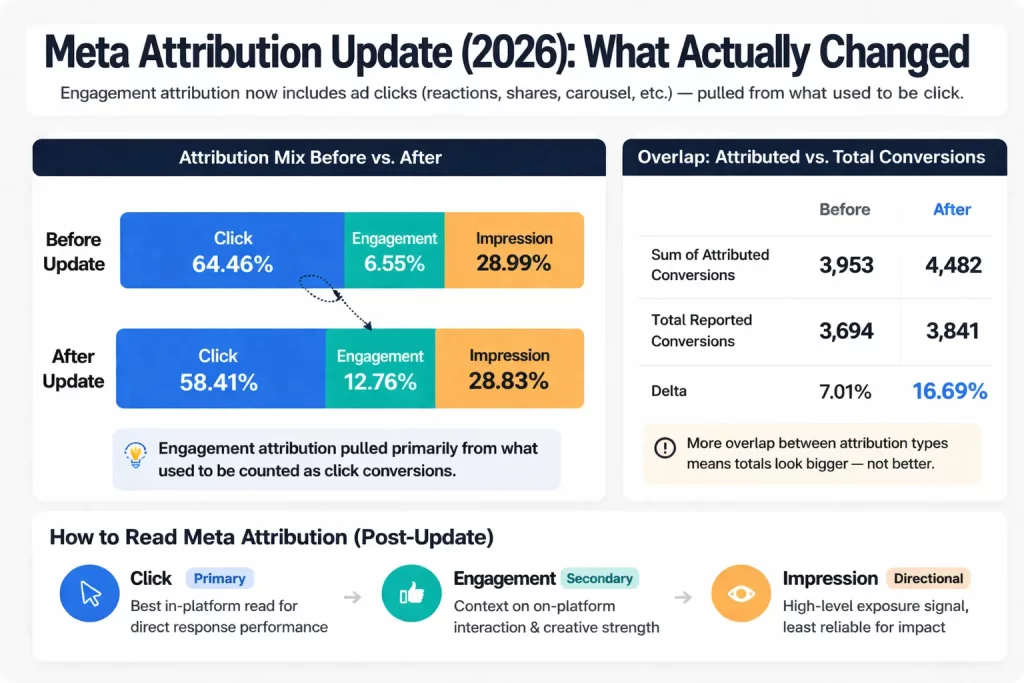 Meta’s attribution update does not make platform reporting more truthful. It makes the reporting categories more interpretable.
